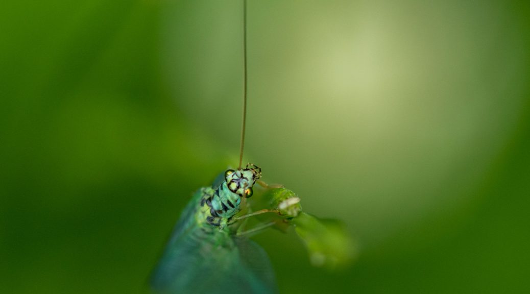 Sie ist ein Wächter der Natur, die Florfliege mit ihrem sanften Schwung, ein Beschützer, ein Hüter und ein Freund, der die Blumen und die Pflanzen uns herum behütet.